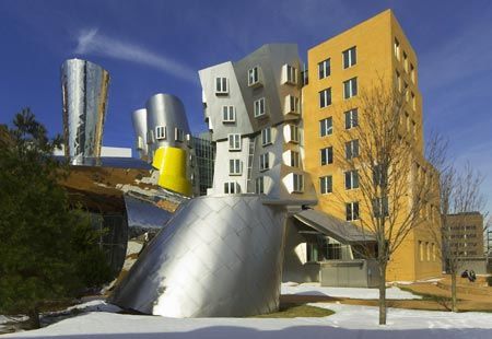 位于麻省剑桥的雷与玛利亚史塔特科技中心也是由法兰克·盖里设计,与2004年投入使用。虽然该建筑的美感曾一度引起争议,但其摇摇欲坠的墙壁和骤然下降的曲线还是吸引了很多游客。