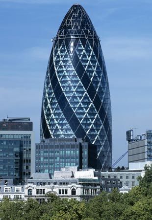 小黃瓜因其独特的圆锥形而得名,这座办公大楼位于伦敦金融区圣玛丽斧街30号,于2004年投入使用。虽然大厦是圆锥形,但是整栋大厦只有一块弯曲的透镜状的玻璃用来覆盖顶部。大厦高600英尺(90米),有40层,内部进驻的企业是保险公司和其他金融公司。