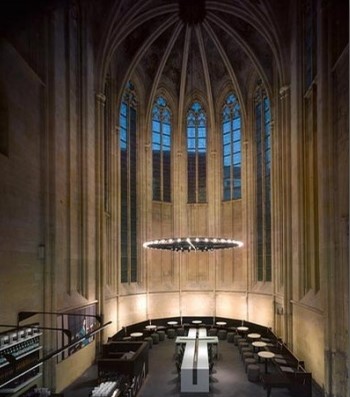 What does a city do with an 800-year-old church withno congregation? Well, it could make like the Dutch and convert it intoa temple of books. The old Dominican church in Maastricht was beingused for bicycle storage not long ago, but thanks to a radicalrefurbishment by Dutch architects Merkx·Girod it has been turned intowhat could possibly be the most beautiful bookshop of all time。