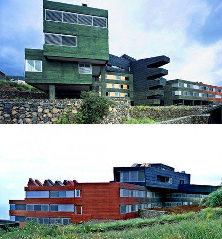 位于西班牙古镇特纳里夫(La Orotava)附近的Rafael Arozarena高中因为拥有一座与周围环境完美融合的学校建筑的名声大噪。该建筑物由西班牙AMP Arquitectos事务所设计,整个建筑和原来存在的墙壁及农业梯田混合在一起,渐变色设计的建筑将农业梯田间隔出来,整个建筑围成了一个封闭的空间。