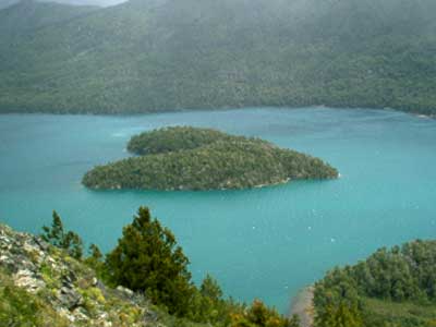 这是阿根廷巴塔哥尼亚的Gutierrez(古铁雷斯)湖,湖中有树木覆盖的心形岛屿,非常漂亮。在湖的东面观察,效果最佳。