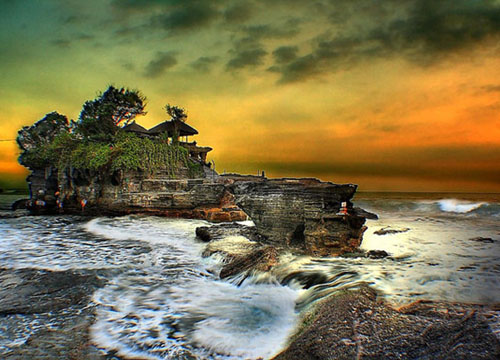 巴厘岛的落日景观绝对是大自然鬼斧神工的杰作。也正是冲着这个绝美的景观来到了巴厘岛的海神庙。矗立在澎湃海水中的巨大岩礁上的海神庙,庄重且神秘。海神庙奇妙之处在于,涨潮时整个海神庙的下的岩石都被海水环绕,与陆地完全隔绝,退潮时才会显出与陆地相连的通道。据说在巴厘岛海神庙前祈福,能赐给情侣爱情的神秘力量。
