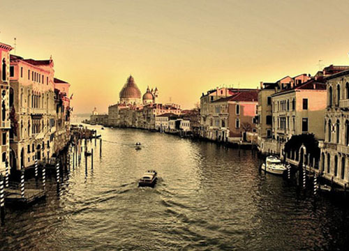 威尼斯享誉“世界最浪漫城市”,而当中观日落最罗曼蒂克的莫过于大运河的Accademia桥了。从这里,夕阳西下衬托着周围15世纪的古建筑物。夏日空气清新,五彩缤纷的色调最为显著;但冬雾弥漫的时候,也有一股庄严的美。