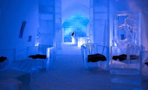 最极致的浪漫,还是在瑞典北部靠近基律纳的小村朱卡斯加维(Jukkasjrvi)的冰酒店。宽大的冰床上铺着厚厚的海绵垫和驯鹿皮,酒店提供的睡袋可以抵御零下35摄氏度的低温,戴上睡帽和最爱的人做一个严严实实地美梦。很多房间只挂个门帘,因此,如果有好奇的住客进来“欣赏”你们的睡姿,千万不要觉得惊诧。第二天清晨,北极的晨光初现时,床头早已准备好温热的越橘汁。酒店冰酒吧里的冰椅、冰杯、冰灯都由纯天然的冰制成,点上五彩绚丽的灯,营造出北极光的效果,再让吧台侍者调一杯红蓝白三色鸡尾酒,就连味蕾也一起“北极光”了。入夜,还可以坐上狗拉雪橇,抵达专门观赏北极光的营地,一起吃两口暖身的驯鹿肉,然后依偎在一起,等待真正北极光的出现吧。