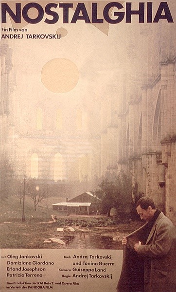 《乡愁》Nostalghia(1983) 一位俄罗斯作家Andrei Gortchakov,与他美丽的女翻译Eugenia去往意大利进行语言研究,在青葱的意大利风景和俄罗斯乡下沉默色调间的色彩转换,揭示了他的乡愁, 揭示了他对一直躲避他的精神之光的普遍深入的渴念。他与家人分离,远离祖国,如今孤身一人,开始执行这一存在主义的任务。