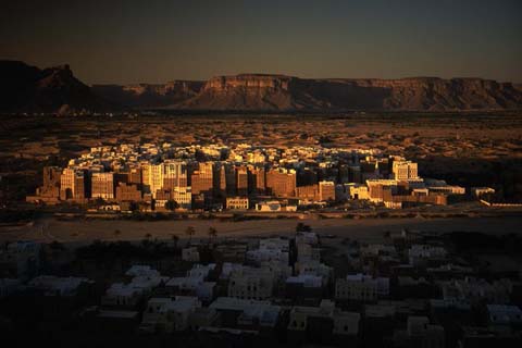 在阿拉伯半岛的沙漠中央拔地而起的一片高层建筑群给人一种海市蜃楼般不可思议的感觉。那简练的外观,雷同的造型不由让人联想到纽约的摩天大楼。这些用土坯为建材的建筑群高达30米,在中世纪来说的确堪称高层建筑。具考证这种高层建筑的由来是传统家族制度的产物。当时家族分家后一般不在外面新盖房屋另起炉灶,而是在原来的房屋顶上加层扩建,从而逐渐形成了这种高层建筑。每栋建筑为5层或8层结构,总共有500多座,居住有7000入左右。高楼的1、2层房间大多没有窗户(1层养家畜,2层作仓库),3层以上供人居住。屋顶和顶楼都涂有雪花石膏。这种涂白实际上对建筑物起到了保全作用。设想如果没有每年一度的涂白,300年前建造的房屋可能早已被侵蚀掉了。现存的建筑多为100年前或300年前建造的,最古老的还可追溯到10世纪。1982年被认定为世界遗产!