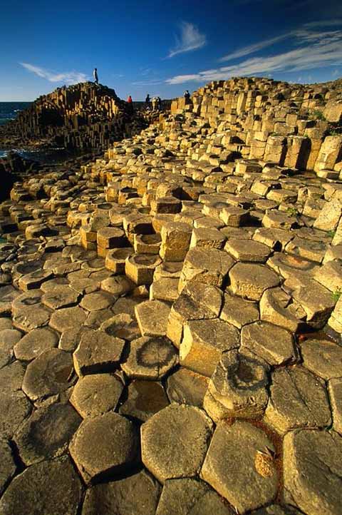 位于北爱尔兰贝尔法斯特西北约80公里处大西洋的贾恩茨考斯韦海岸110米的断崖上,可见无数石柱突起。总长8公里的海岸线上呈正六角形,共计4万根的石柱由陆地向海里绵绵延伸。其景观有似巨人所造,固有“巨人古道”之美称。是6000万年前太古时代火山喷发后熔岩冷却凝固而形成的。如此排列有序的石柱,不禁让人怀疑不是天然雕琢而是人工有意堆积而成的。1986年被认定为世界遗产 !
