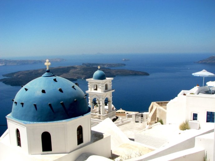 圣托里尼岛,位于基克拉德斯群岛最南端,是希腊最受欢迎的婚礼和蜜月圣地。岛屿的面积仅96平方公里,海岸线长69公里,紧靠火山口的一边有四个小镇:锡拉(Thira),Imerovigli,Firastefani和伊亚(Oia)。虽然地方不大,圣托里尼却拥有得天独厚的自然景观,任何地方都能成为新人们宣誓结婚的最佳地点。