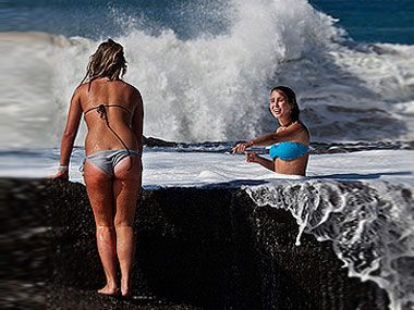 没有人能够像法国果维埃拉的后人那样喜欢塔希提岛海滩的。在这里,上层人士不仅会散开自己的头发,还会脱掉他们的泳衣。赤裸上身或裸体的名流人物和惊讶的游客,热衷于体验这个因20世纪50年代荧幕性感女星碧姬·巴铎(Brigitte Bardot)而著称的海滩。那些寻求快乐的人们蜂拥而至这片对外开放的蓝色海岸,尽情地享受日光浴,体验着名流的生活。私人游艇往来行驶于波光粼粼的地中海上,而游客们则在海滩的躺椅上精心地打扮、做出悠闲的姿势,慢慢品味着鸡尾酒。
