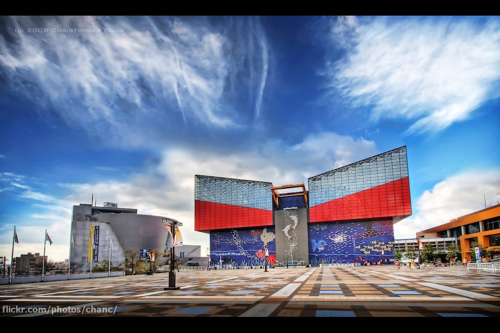 【日本大阪海游馆】于1990年7月20日开业,总蓄水量达11,000吨,是世界最大级别的城市型屋内水族馆。海游馆根据“拥有火山活动的地球和存在地球上的所有生物,彼此相互作用而形成一个生命体”的盖亚假说,以绵延不断地围绕着太平洋的环太平洋火山带,和与其互相重叠似的而连绵千里的环太平洋生命带为主题,用14个大型水槽,分别再现了环绕太平洋的10个地域的自然生态环境。散客月下海游馆之旅从隧道型水槽「鱼类穿越道?水门」揭开序幕,接着开始进入阳光普照的「日本森林」,以世界最大之鱼-“鲸鲨”悠游其中、蓄水量达5,400吨的 「太平洋」水槽为中心,从地面到海底环绕太平洋二周的路程持续不断。馆内的水槽配置也尽量忠实地再现实际的地理位置关系。此外还有水母展示专区「翩翩起舞 水母馆」、举办各种特别展览的「海游馆美术展览室」、「企画展览室」等。散客月下海游馆展示了约580种共30,000余只形形色色的生物,其中不仅包括各种鱼类,还有两栖类、爬虫类、鸟类、哺乳类以及无脊椎动物、植物等,重现了环太平洋的大自然景观。