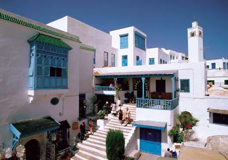 突尼斯城以北20公里处,地中海南岸,坐落着北非最美丽、最浪漫的小镇西迪布撒以德。中世纪时,躲避宗教迫害的西班牙原住民从伊比利半岛渡过地中海,逃到了这座悬崖小镇,并在此安家扎寨。当时的人们应该不会料到,昔日草草逃生的避难所如今却是世界十大浪漫小镇之一,满满一个城的安达路西亚风格的白屋蓝窗,满满一个城飘散着丁香花瓣,在它高高的悬崖上,随便一望,就能看见淡绿色的柔情的海。沿着泛青绿色光的石板路逶迤前行,你会看到白色的古堡、白色的平顶屋,高高低低,错落而成童话里的姿势。