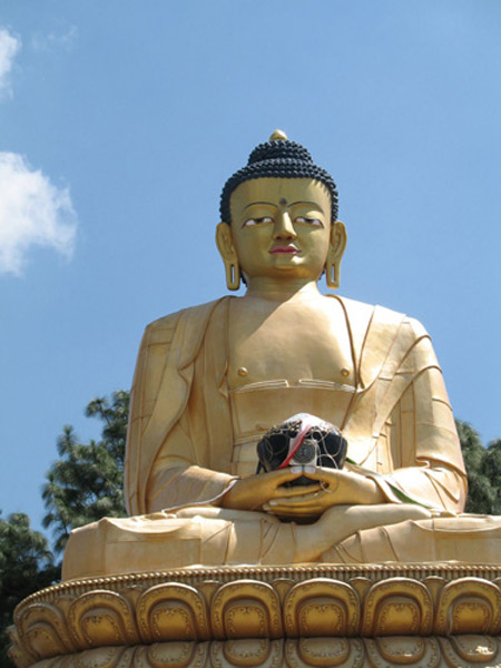 加德满都是尼泊尔的首都,意为“独木之寺”。相传这里曾是一片烟波浩淼的湖泊,有一天文殊菩萨降临此地,挥剑劈开湖岸,放干了一湖清水,原来的湖泊就变成了谷地。