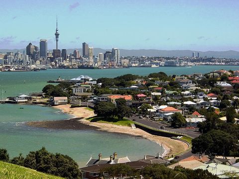 奥克兰是新西兰最大的城市和港口,伫立在塔斯曼海与太平洋之间的细长的地峡上,两面环海,东侧是濒临太平洋的威特马塔港湾(Waitemata)。在港湾之外,散落着如同珍珠般的零星岛屿;港湾内,舟楫横阵,海水清澈,海港大桥连着两个港湾。大桥、港湾和沉睡的朗吉脱脱(Rangitoto)火山,充满着蓄势待发的蓬勃生气。