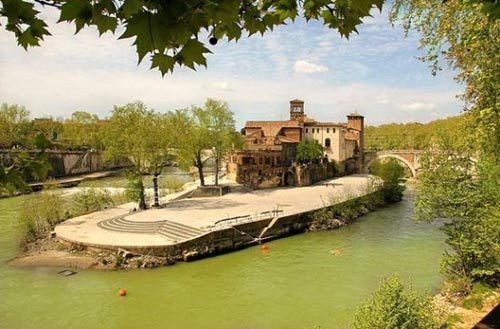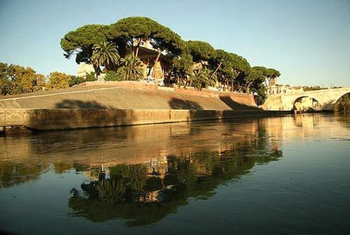 IsolaTiberina,中文译为“台伯岛”,因为她是意大利的罗马市内台伯河弯曲处的一个船形河中小岛,也是台伯河流经罗马河段的唯一岛屿,它有270米长,67米宽。台伯岛长期以来一直与人类的康复和治疗有关,因为与它相关的负面传说,人们通常避开台伯岛。只有最严重的罪犯和传染病患者被送到这里关押。起初是医术之神阿埃斯库拉皮奥的传说,她摇身变成蛇的样子在此建立了神殿。后来罗马人在神殿的遗址又建起了圣·巴尔托梅奥大教堂,现在意大利人干脆在此建起了现代化的医院。