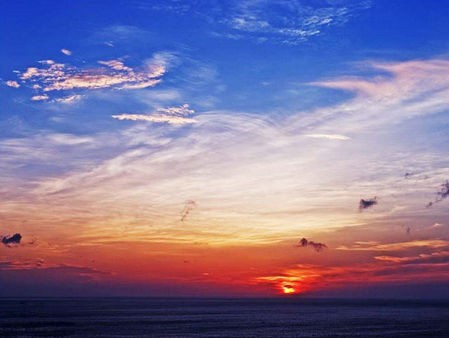 在墾丁,可以縱覽臺灣海峽、巴士海峽、太平洋。位於墾丁鵝鑾鼻與風吹沙之間的龍磐公園,就在公路旁邊的斷崖之上,遼闊的大草原是欣賞日出的最佳地點,因此受到眾多遊客的青睞。每逢黎明之際,五彩斑斕的朝霞將天空染成一片片變幻萬千的色塊,片刻間,一輪紅日緩緩躍出海面,在朝霞簇擁下映照著清澈見底的藍色海水,搖蕩起海面上一層層金光璀璨,仿佛觸手可及,奪目的光芒灑在一個個奇形怪狀的裂溝、滲穴、石灰巖洞,如沖開千萬條金色隧道,暖暖的陽光在大片的濃綠草地和幾百種熱帶植物結合而成的牧野上肆意蔓延,壯闊磅礴的氣勢讓人頓時湧起豪情萬丈,驅散秋冬寒涼蕭瑟的氣息。