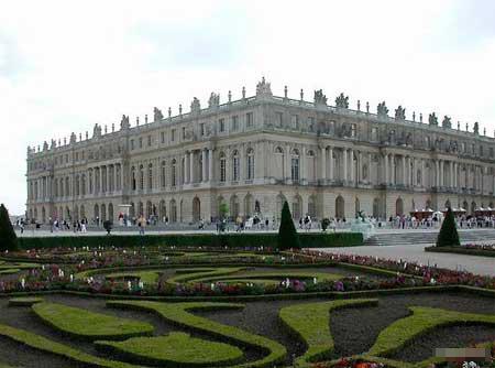 凡尔赛宫是法国封建时的帝王的行宫,在巴黎市西南凡尔赛城。始建于十六世纪,后屡经扩建形成现存规模。包括宫前大花园、宫殿和放射形大道三部分。形体对称,轴形东西向。宫内装潢极其豪华,内壁悬挂壁毯、油画、雕刻,大厅内陈列著名雕刻家的青铜或大理石雕像,享有艺术宫殿之盛誉。1919年《凡尔赛和约》在此签定。