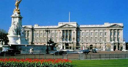 英国王宫,在英国伦敦。1703年白金汉宫爵始建,1837年维多利亚女王继位,正式成为王宫。宫殿豪华,内有宴会厅、音乐厅等600多个厅室,正宫前广场中心有维多利亚女王石像。宫前每日上午十一时半至十二时之间举行皇家卫队换岗仪式,吸引游人。
