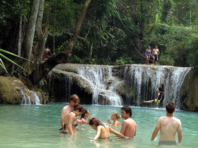 从琅勃拉邦出发,坐上嘟嘟车就可以到达老挝著名的自然风光达关西瀑布了。即使在炎炎夏日的老挝,这里的瀑布仍旧清澈透明,游客可选择避过人流高峰和炎热中午,下午晚些时候再去游泳是最舒服的了。