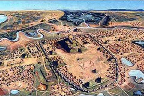 公元1100年左右,在今天美国伊利诺斯州的卡霍基亚都城居民一度达到了3万人。在18世纪末北美东北部人口大爆炸前,卡霍基亚一直是北美地区第一座、最大的真正意义上的城市。这座密西西比河流域的文化中心曾经出现过井然有序的社会、繁荣的商业并修建堤坝。其中的僧侣堤坝高100英尺,在城中居高临下,它很可能曾被掌权者用来作为建造居所的地基。