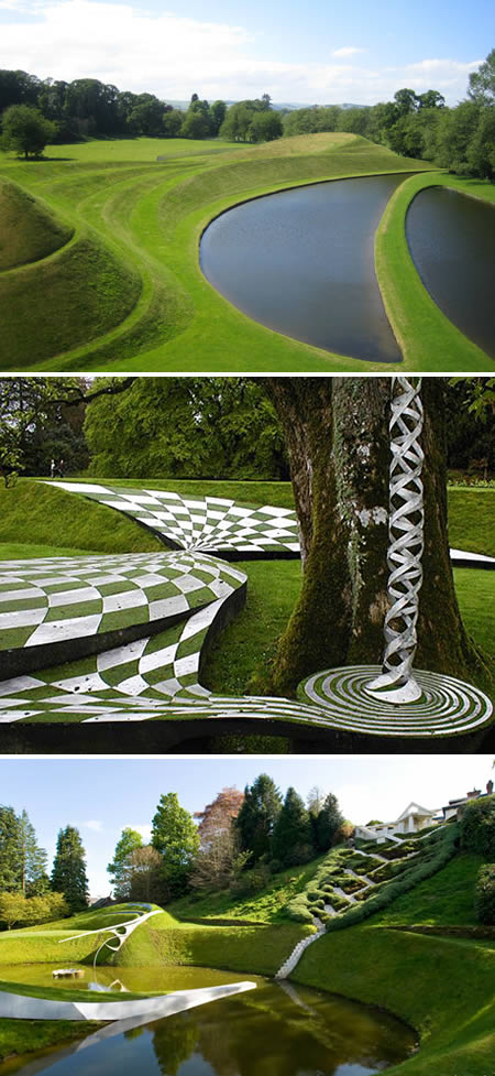 這座由後現代建築大師Charles Jencks與他已過世的妻子在1989年一同設計、建立的花園,位於蘇格蘭的Portrack House,花園內起伏不定的小山坡,以及帶點愛麗斯夢遊仙境風格的造景,讓每個走入花園的人,充分感受到花園內的獨特氣息。