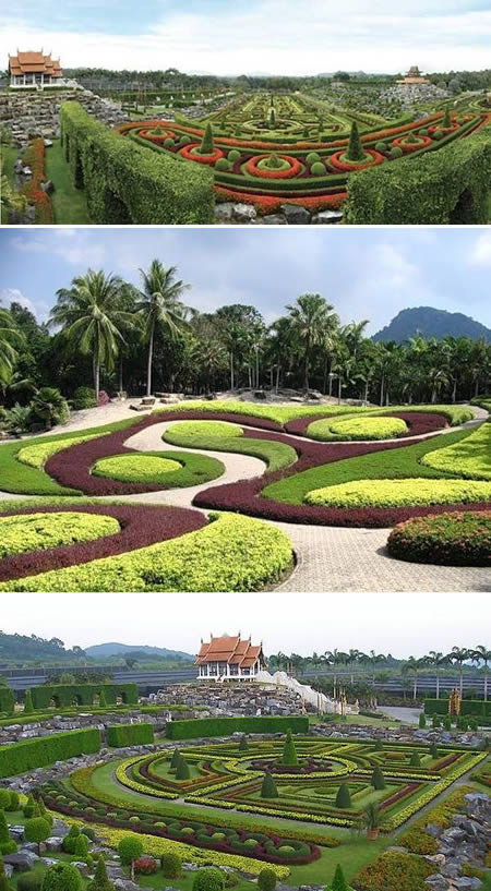 雖然Suan在泰國話是花園的意思,但這裡基本上已經到達樂園的境界,舉凡各種泰式建築、villa、宴會廳、餐廳、泳池等等,將600英畝的休閒空間點綴得滿滿滿,據說這兒原本規劃來蓋果園用的,後來因為Nongnooch女士從國外旅行回來,才決定將這改成充滿熱帶風情的花園,從1980年正式開幕以來,不僅保留了許多熱帶地區的花花草草,更吸引了不少慕名而來的遊客。