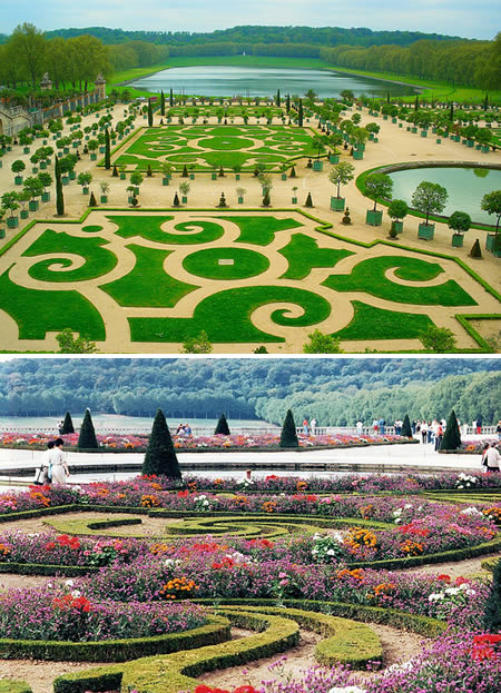 出自於Andre Le Notre之手的凡爾賽宮花園,建造於路易十四時代,當時這邊除了樹木、草原和沼澤外,什麼都沒有,工匠們剷平了森林,填平了沼澤,種了一片又一片的花圃及睡蓮,蓋了一座又一座的噴泉,終於完成了現在咱們看見的凡爾賽宮花園,以當時的時空背景來看,可以想見這是一項多大的工程。