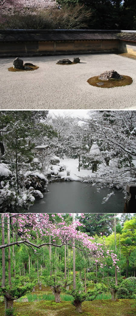 由於年代久遠稍微有點不可考,究竟是哪位庭園名家在日本京都的龍安寺設計出這麼具有禪抑的枯山水造景,已經沒有人知道了,然而面對著放在白沙中恆久不變的15顆石頭(其實還是會變啦!只是天天看,可能肉眼也觀察不太出來它們每天被風化侵蝕的痕跡啦!),找出真正的設計師也沒什麼太大的意義,畢竟修禪就是為了讓人放下自私自我自欺自怨,擺脫心靈的枷鎖,又何苦執著於十五分鐘後就被時間與歲月吹散的名與利呢?