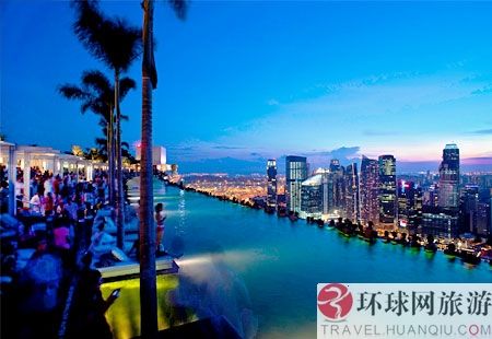 从空中看,滨海湾金沙酒店的屋顶综合设施就像是一艘巨大的游轮;从地上看,似乎有点像巨石阵。这个屋顶综合设施坐落在三个酒店的顶上,高出地面656英尺,游泳池长200英尺。这里还有一个可容纳900人的观景台,就像站在新加坡摩天观景轮上观看风景一样。