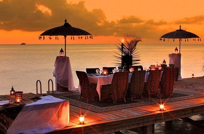在穆沙岛的海滩餐厅中,旅客能伴着迷人的月光和篝火品尝当地美味的海鲜大餐及其酒窖中珍藏数年的醇香美酒。