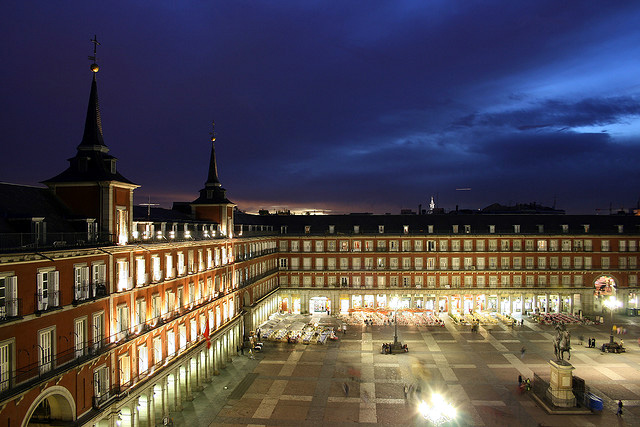 马约尔广场位于西班牙马德里,是西班牙游客必去的旅游景点。它最初建立在马德里城墙外围,曾举办过斗牛比赛、商业活动、音乐会、足球赛以及刑事活动。主广场中央伫立着前西班牙国王——飞利浦骑马的雕塑,它的周围是前面包师协会总部所在地、布满精美壁画的面包房之家(Casa de la Panadería)。