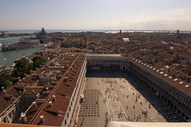 圣马可广场是意大利威尼斯的中心广场,通常被称为“the Piazza”。拿破仑曾一度称它是“欧洲最美的广场”。作为欧洲主要广场之一的圣马可广场,周边常年车水马龙,交通非常发达。威尼斯主要建筑之一的“巴西利卡”(一种罗马式长方形基督教堂)坐落在广场的最东边。由于该广场所处的位置是威尼斯的海拔最低处,因此每逢涨潮或暴雨时,这里总要遭到水淹。