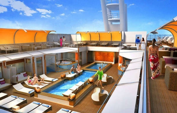 幻想号邮轮有8个风格各异的泳池区,设有水鸭号水上飞车,让乘客穿越在233米长的滑道中。