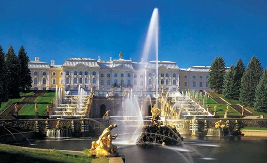 夏宫是一座豪华和美丽的宫殿,成立于1710年,彼得大帝下令建在波罗的海的芬兰湾。它是众多小宫殿、园林景观、雕像和喷泉的集合,被人称为“俄罗斯的凡尔赛”。在波罗的海的宫殿之下是世界上最大的喷泉池。喷泉的底座是由黄金打造的大力士和大狮子雕像。