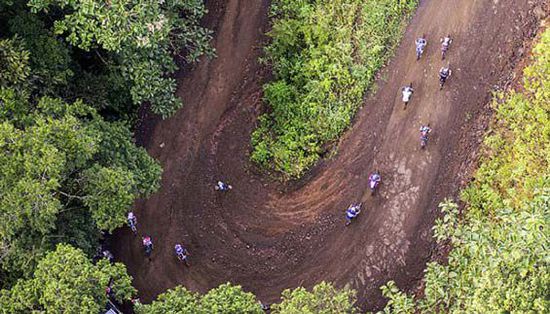 LaRuta线路从太平洋冲浪胜地出发,继而爬上火山之巅,然后下至加勒比海岸。沿途地形条件艰苦,甚至还需要穿过几座看起来破败不堪的铁路桥。