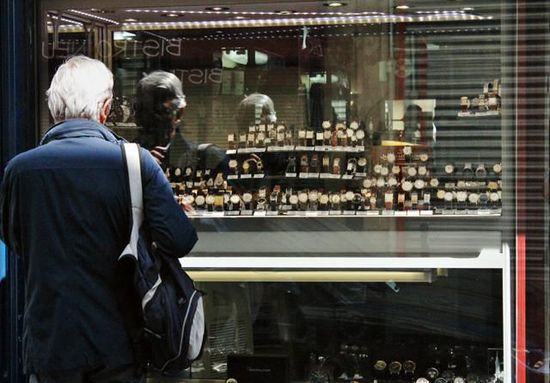伦敦、东京、巴黎——在这三座时尚之都,并不只能找到最前沿的时装。那里的二手珠宝腕表市场,在钟表圈内也有口皆碑,以款式多、货真价实著称。一家家小小的古老店铺,囊括了从上个世纪流传至今的古董珠宝和手表,年代久远的、国内抢手的热门货几乎都可以在这些小铺子里找到。一不小心,还有可能淘到已经绝版的大牌表款。(图:位于Hatton Garden大街上的Carlo Jewellers。这条大街以二手珠宝店而著名,钻石、珍珠、黄金应有尽有)