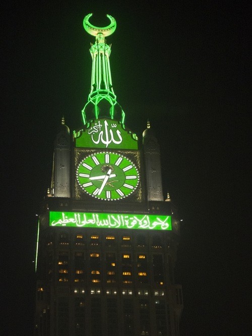 比起前几座钟塔来,竣工于2012年的麦加皇家钟塔显然十分年轻,但它却是两项世界纪录的保持者:世界最高的钟楼(1900英尺),世界最大的钟面(四个钟面的直径均为151英尺)。每个钟面都装饰着LED灯,在夜里发出如梦如幻的光芒。钟楼上还有一个宽敞的观景台,包括大清真寺在内的麦加景观在这里都一览无余。