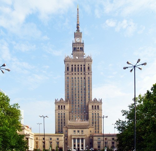 文化科学宫钟塔高750英尺,曾是世界上最高的钟塔之一。时钟的指针长达20英尺,隔很远的距离也能准确辨认时间。文化科学宫建于20世纪50 年代末,上面的时钟则是在2000年安装上去的。在日本电信电话公司钟楼和麦加皇家钟楼建成之前,它一直是世界上最高的钟塔,如今也仍是华沙重要的城市景观。钟塔原本以斯大林的名字命名,向民主过渡时期,里面的斯大林塑像和共产主义艺术品均搬迁他处。