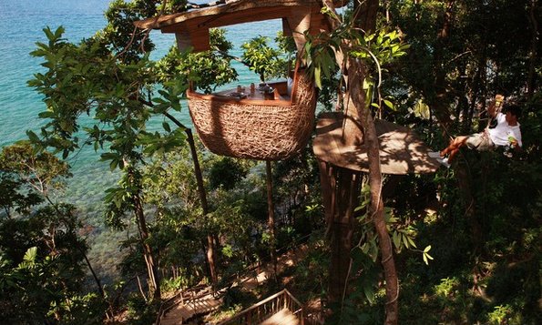 泰国SonevaKiri的KohKood。位于泰国热带雨林中的餐厅别有风味,总让人想起《人猿泰山》。