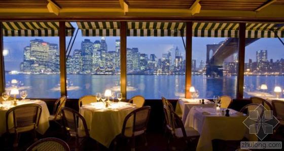 美国纽约布鲁克林TheRiverCafe。餐厅位于布鲁克林大桥之下,对岸便是气势恢宏的纽约中心景色以及自由女神像。