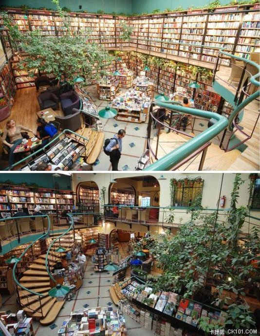 P10 墨西哥:潘多拉书店,室内植有亭亭绿树.犹如公园.