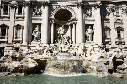 许愿池,又叫做幸福喷泉,因为它的原名是特雷维喷泉(Fontana di Trevi),传说会带给人们幸福,池中有一个巨大的海神,驾驮着马车,四周环绕着西方神话中的诸神,每一个雕像神态都不一样,栩栩如生,诸神雕像的基座是一片看似零乱的海礁。喷泉的主体在海神的前面,泉水由各雕像之间、海礁石之间涌出,流向四面八方,最后又汇集于一处。