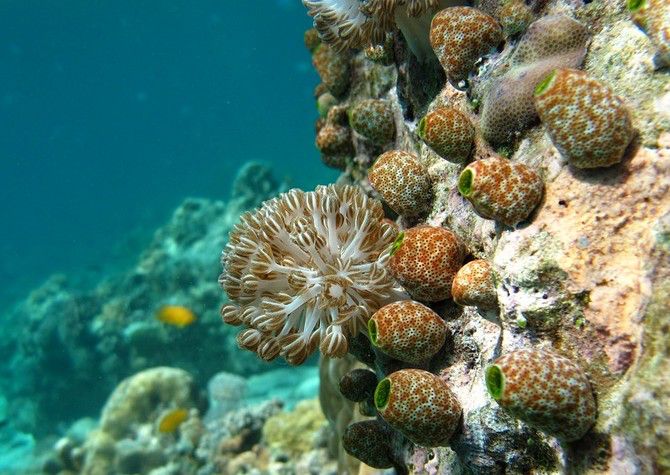 很多旅馆与餐厅沿着海岸分布,岸边浮潜就可以看到不错的珊瑚和沙丁鱼风暴。