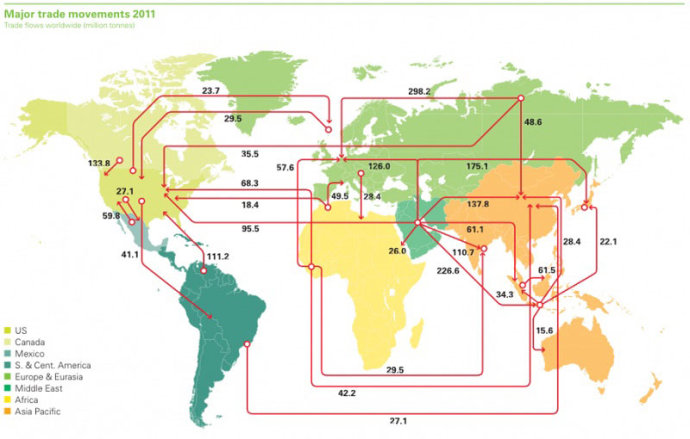 25.2011年世界各国石油进出口图(BP制图)