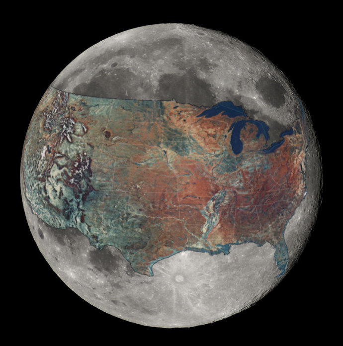 译注:美国地图在地图上所占比例不高,在“月图”上则显得相当大。
