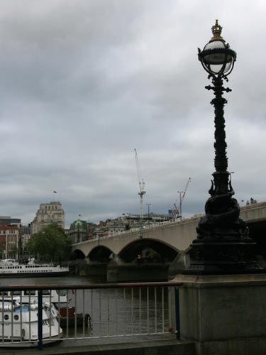 新的滑铁卢桥为钢筋混凝土结构,远远望去,外形简单却不失典雅。桥下5孔有如五道彩虹首尾相连,横跨泰晤士河南北两侧。由于此处位于伦敦闹市区中心地带,而泰晤士河恰好又在此转了一个近乎90度的大弯,因此观赏起两岸的绮丽风光,可以说视角最佳、景致最好。