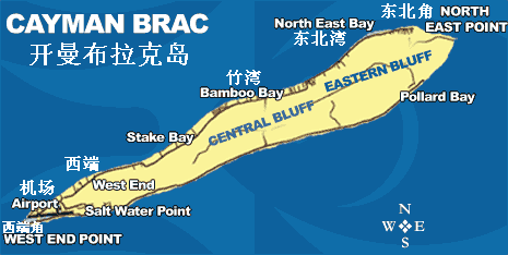 开曼布拉克岛Cayman Brac,是在加勒比海,大开曼岛东北部约145公里(90英里),小开曼岛的东部8公里(5英里),位于19°43′N 79°48′W。长19公里(约12英里),平均宽2公里(1英里),总面积约36平方公里(14.7平方英里)。东部海岸最高点的石灰岩断崖,海拔43米(141英尺)。人口2,277(2010年)。经济以旅游业为主。有吉拉德·史密斯机场。