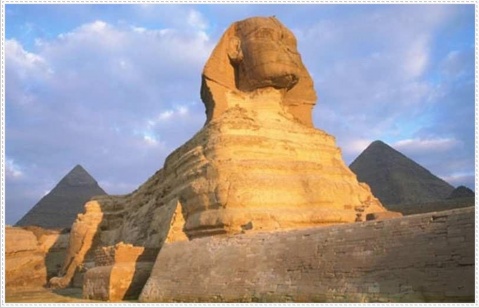 石雕,也称为《斯芬克司像》。高约20米,长57米,约创作于公元前2500年,现位于埃及吉萨。在古代埃及,狮子是战神的化身,也是力量的象征,法老把自己的形象与它的形象混合起来,是为了夸耀神秘的威力,使自己成为万民崇拜的偶像。埃及古王国时期最主要的艺术成就体现在巨大、宏伟的皇陵建筑上,其中最典型的就是这座雕像,它是由整块的天然岩石雕刻而成,高达20多米,面部约有5米长,仅头上的一只耳朵也有2米左右。雕像的头部被刻成古埃及第四王朝法老哈夫拉的头像,身子则是呈坐姿的狮子形象。法老头戴菱形王冠,前额上雕刻着神秘的圣蛇,脑后雕刻着象征神权的鹰。他的下颌原来还有一部庄严的胡须,但后来由于炮击而跌落,现收藏于英国大不列颠博物馆。