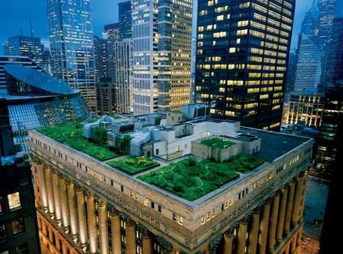 翠绿的屋顶可以储存雨水,减少径流,这也有利于纽约城的环保,因为纽约城的哈德逊河在倾盆大雨后常被污水溢出的下水道所污染。