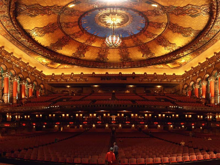 这颗加拿大明珠是一个双层剧院,其中一半为埃尔金剧院(Elgin),但冬季花园剧院才是最引人入胜之处。剧院的墙都是手绘图案,呈现出一种花园的感觉,同时天花板上真的有山毛榉树枝垂挂下来。冬季花园剧院最开始只是一个熙熙攘攘的杂耍剧院,在人们都被有声电影吸引走之后,它曾在1928年关门歇业。几十年后,到了1987年,安大略传统信托基金才斥资几百万美元将其修复。他们用了生面团来清洁了整个剧院,以避免损坏墙上的画,而这些画确实也值得消耗如此多的面粉来清洁。
