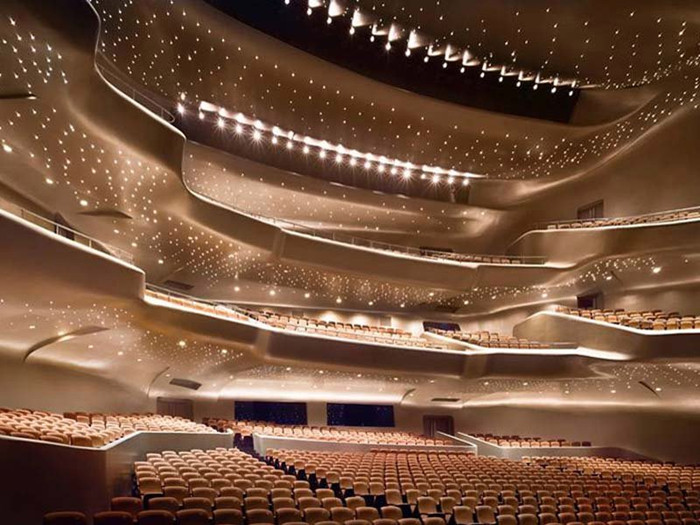即使你有关建筑的知识全都来自于泰德·莫斯比(Ted Mosby,《老爸老妈浪漫史》中的建筑师角色),你应该也会对扎哈·哈迪德(Zaha Hadid)在体育场馆上的建筑才能有所了解(她还设计了伦敦水上运动中心和东京奥运场馆)。她的建筑公司近年来在全世界都留下了令人印象深刻的作品,其中就包括中国这家宏伟的大剧院。剧院中闪闪发亮的灯光和层层下行的座位都会让你陶醉其中,就算你看的只是《卡门》这样演滥了的作品。